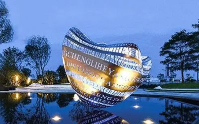 城市園林不銹鋼雕塑以景觀標(biāo)識為主,往往尺寸都比較大,可以作為一個(gè)地段、一條街、一棟樓、一個(gè)小區(qū)、一個(gè)園林,甚至一個(gè)城市的地標(biāo)。